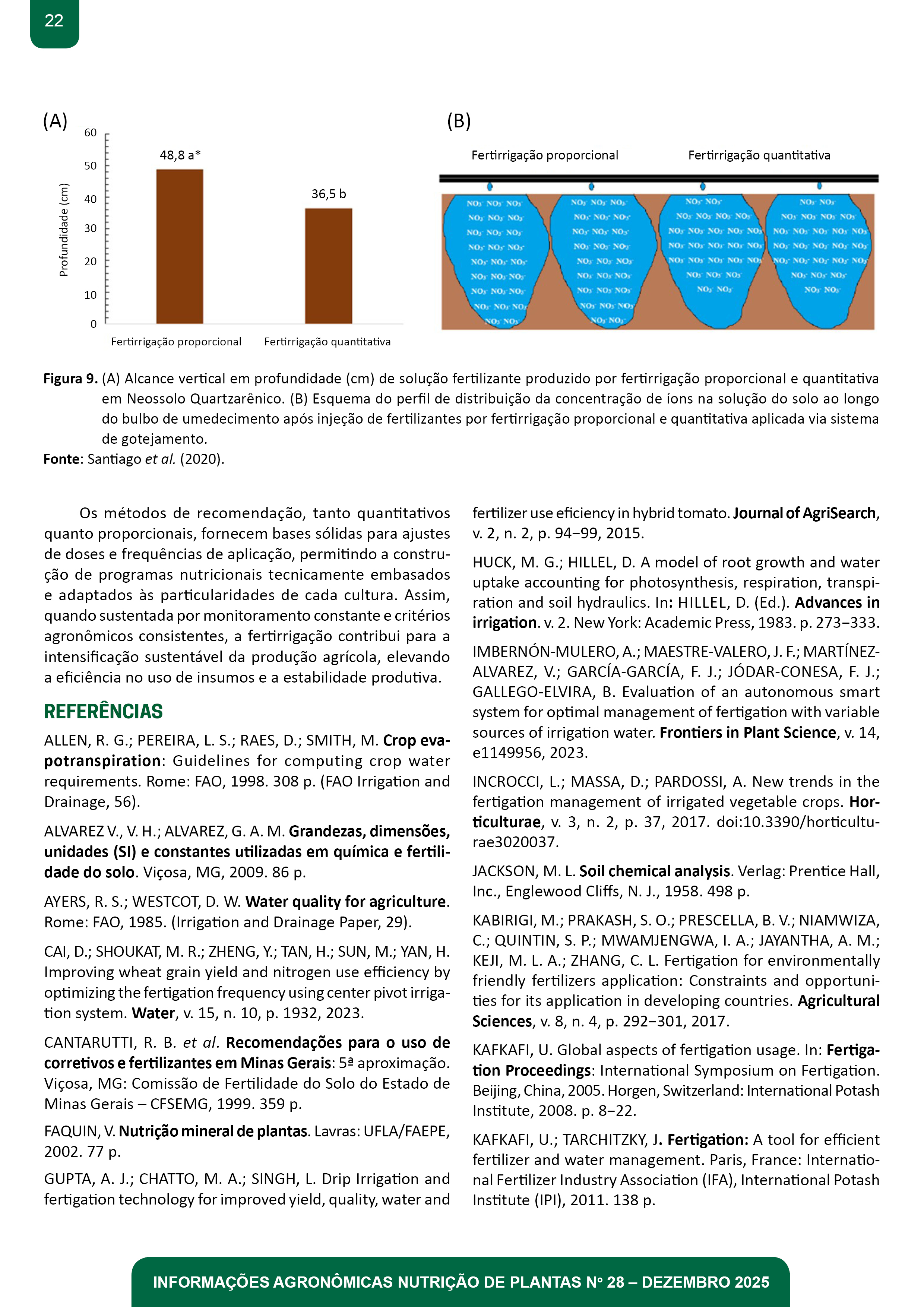 - Pg. 5-23 Artigo Técnico 1: Fertirrigação: Fundamentos, Manejo Nutricional e Tecnologias para Máxima Eficiência no Uso de Fertilizantes Eduardo Cézar Medeiros Saldanha, Flávia Constantino Meirelles, Josimar Vieira dos Reis, Alan Bueno Silva Ataíde,Victor Hugo Pereira Florêncio, Fernando Dubou Hansel