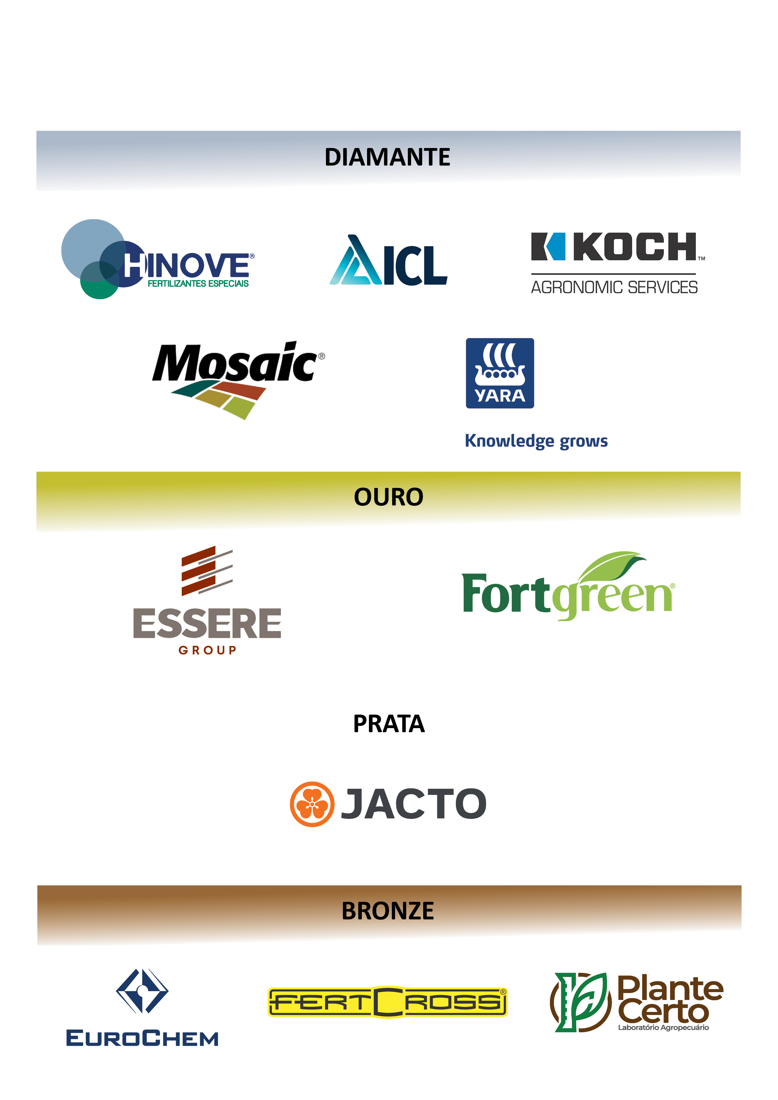 - Pg. 36 Agradecimentos aos Patrocinadores desta Edição DIAMANTE: Hinove Agrociência; ICL Group; Koch Agronomic Services; Mosaic Fertilizantes; Yara Brasil | OURO: Essere Group; FortGreen | PRATA: Jacto | BRONZE: EuroChem; FertCross Leverage e Laboratório Plante Certo