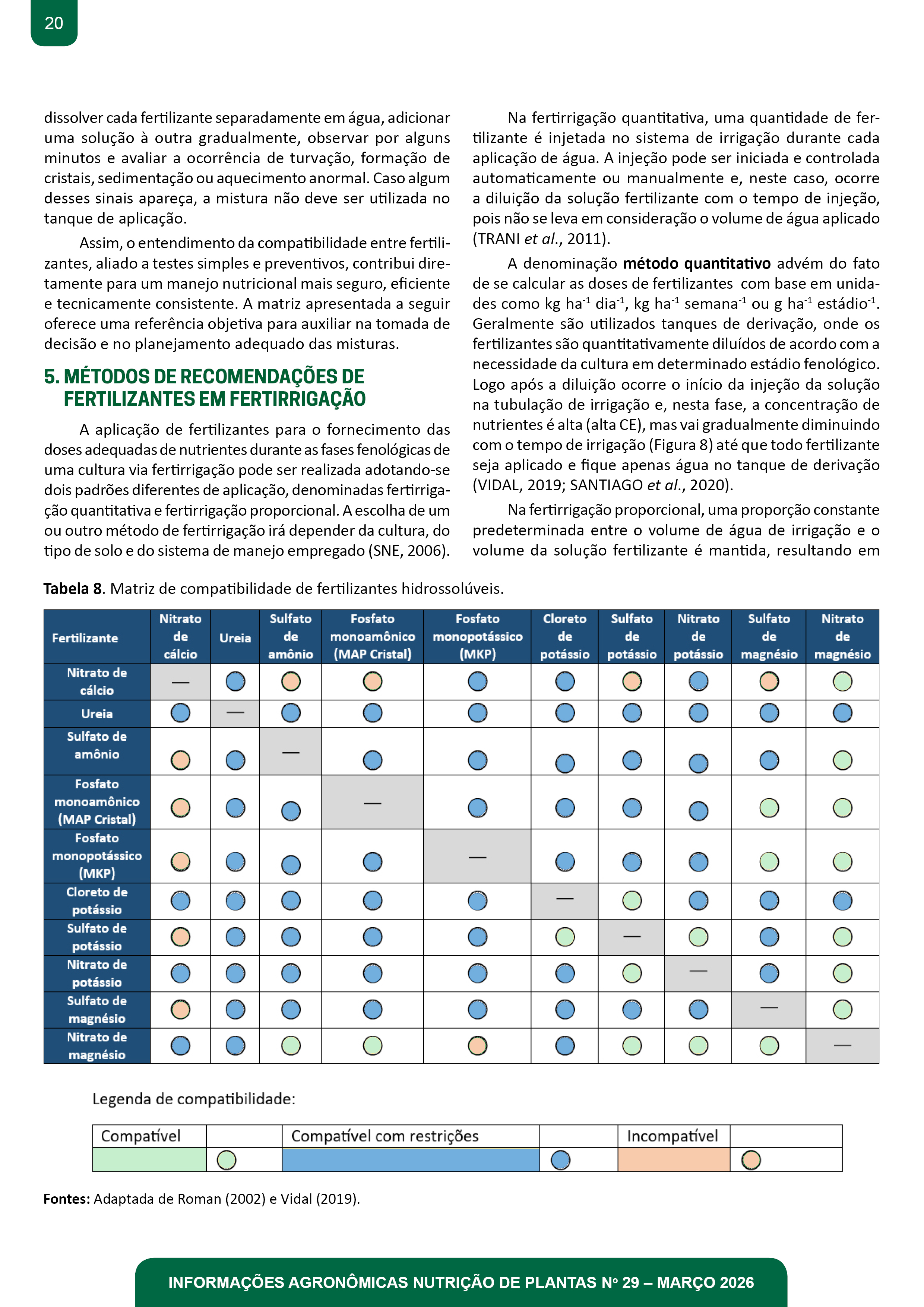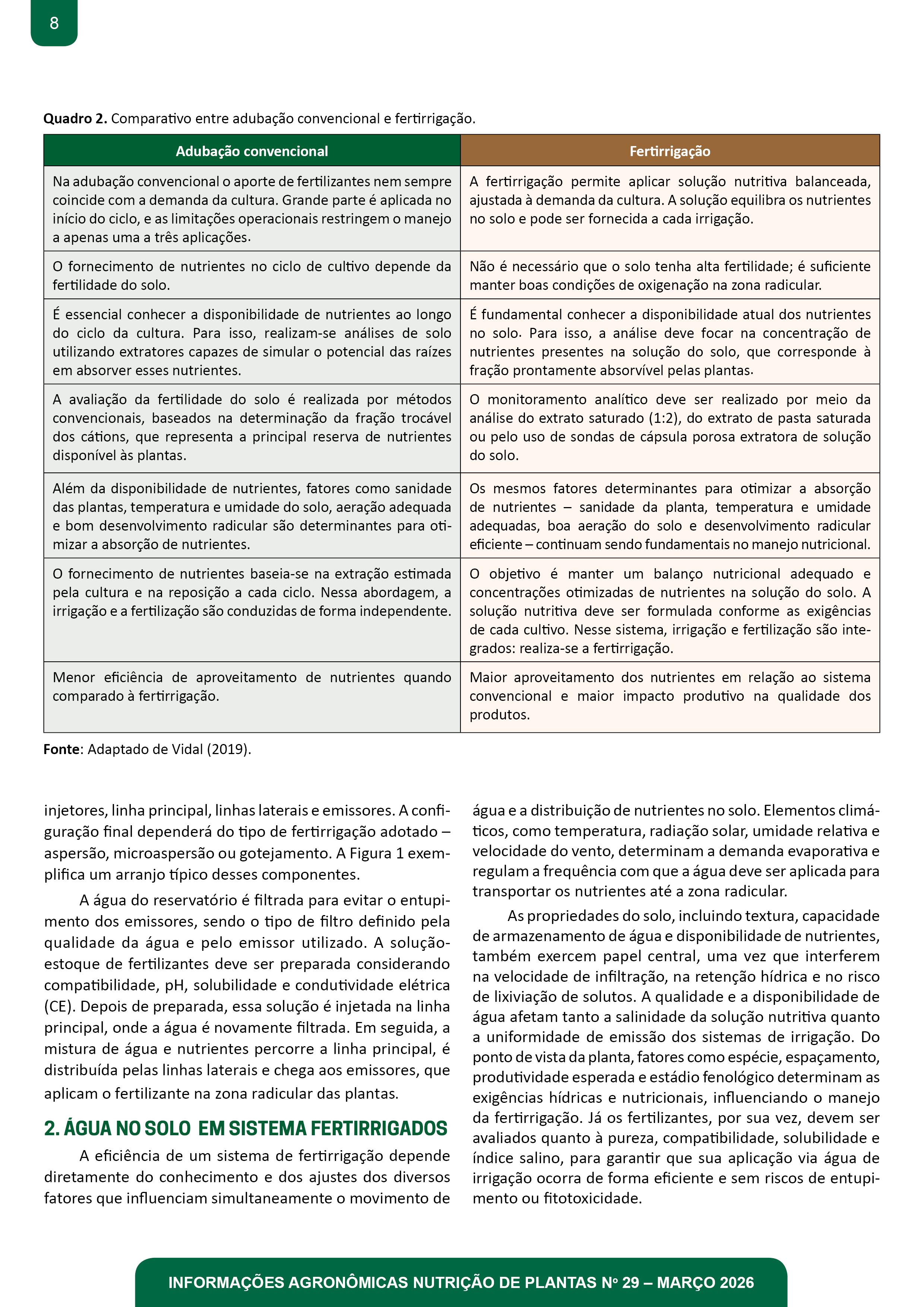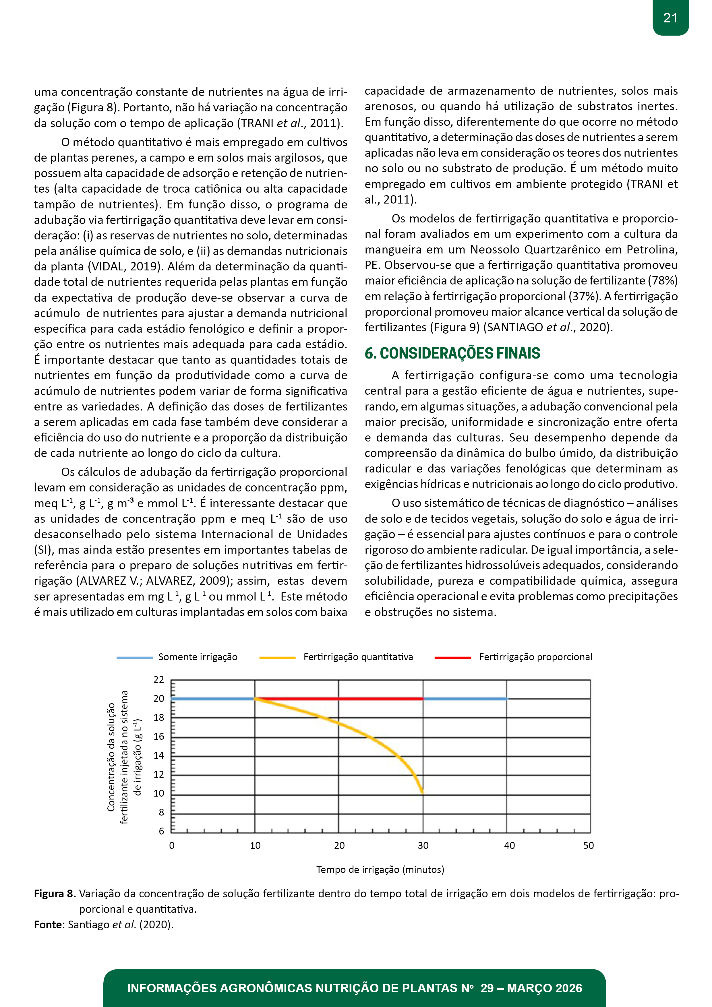 - Pg. 5-23 Artigo Técnico 1: Fertirrigação: Fundamentos, Manejo Nutricional e Tecnologias para Máxima Eficiência no Uso de Fertilizantes Eduardo Cézar Medeiros Saldanha, Flávia Constantino Meirelles, Josimar Vieira dos Reis, Alan Bueno Silva Ataíde,Victor Hugo Pereira Florêncio, Fernando Dubou Hansel
