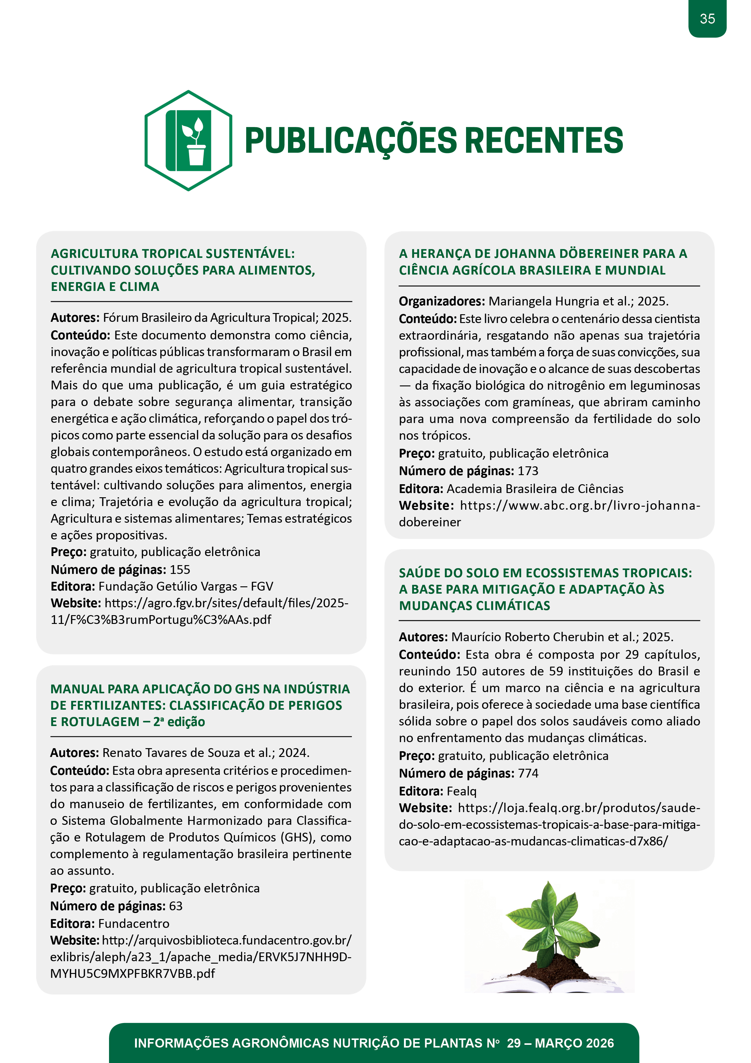 - Capa Informações Agronômicas - Nutrição de Plantas Número 29 | Março 2026