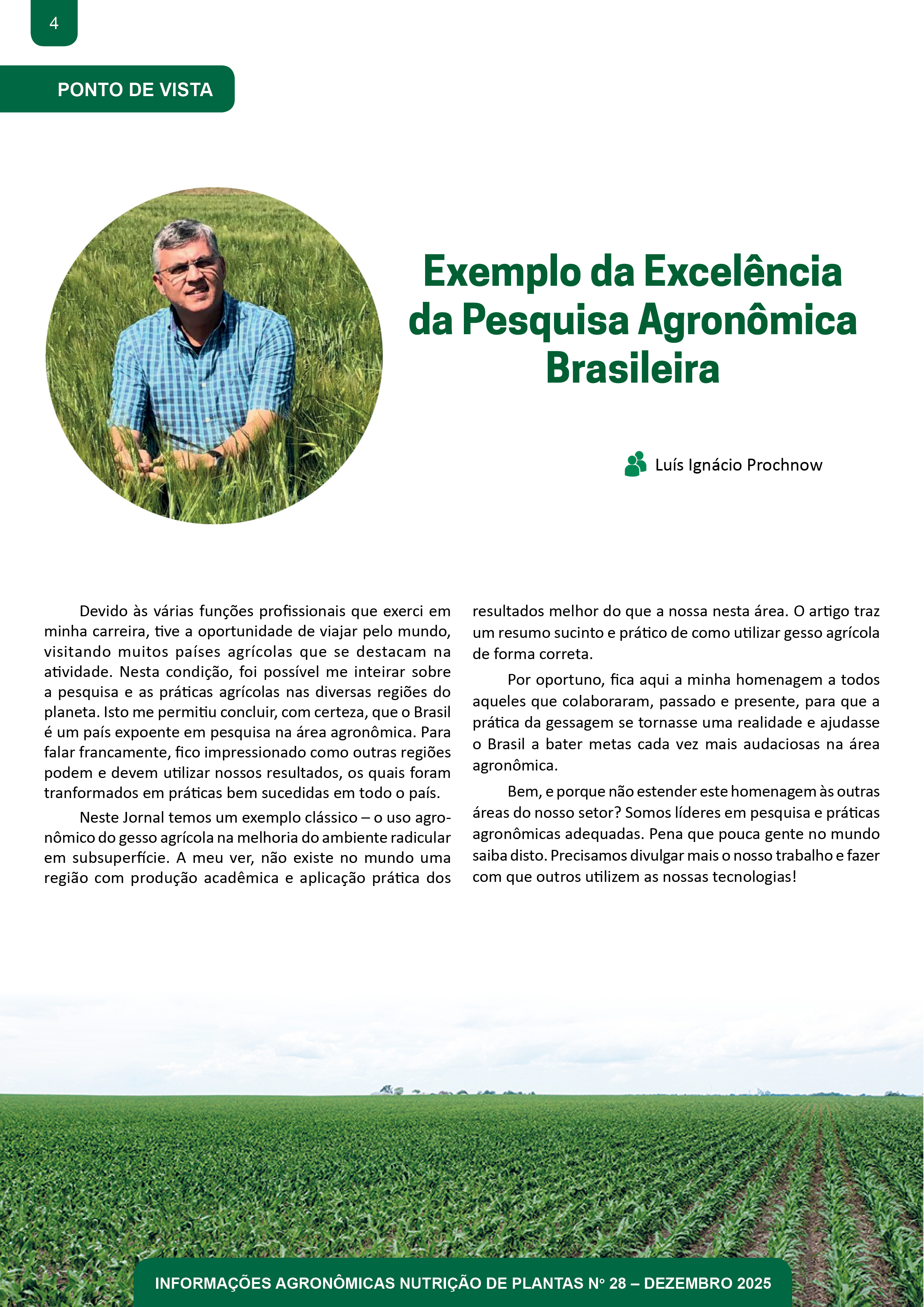 - Pg. 4 Ponto de Vista: Exemplo da Excelência da Pesquisa Agronômica Brasileira Luís Ignácio Prochnow