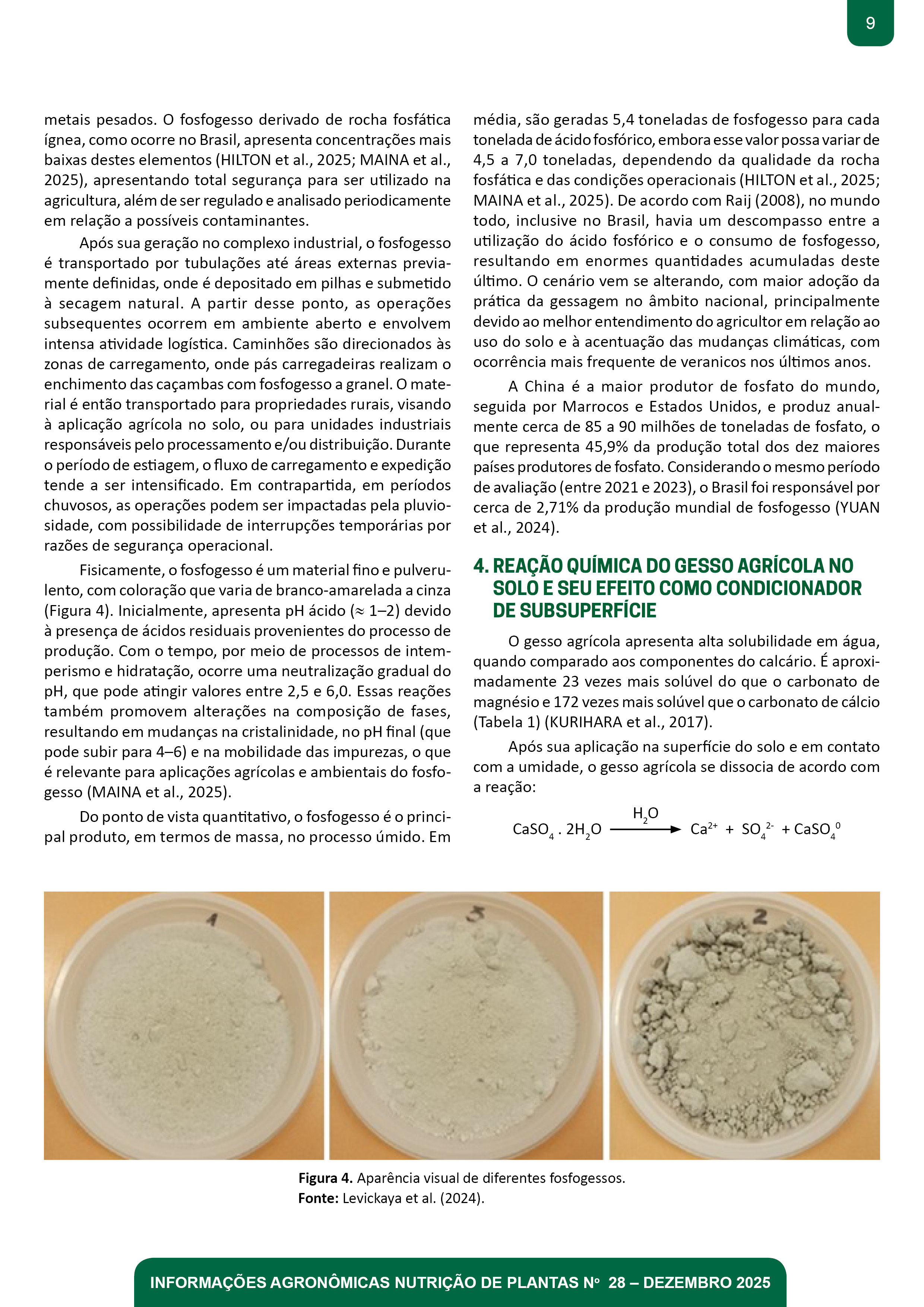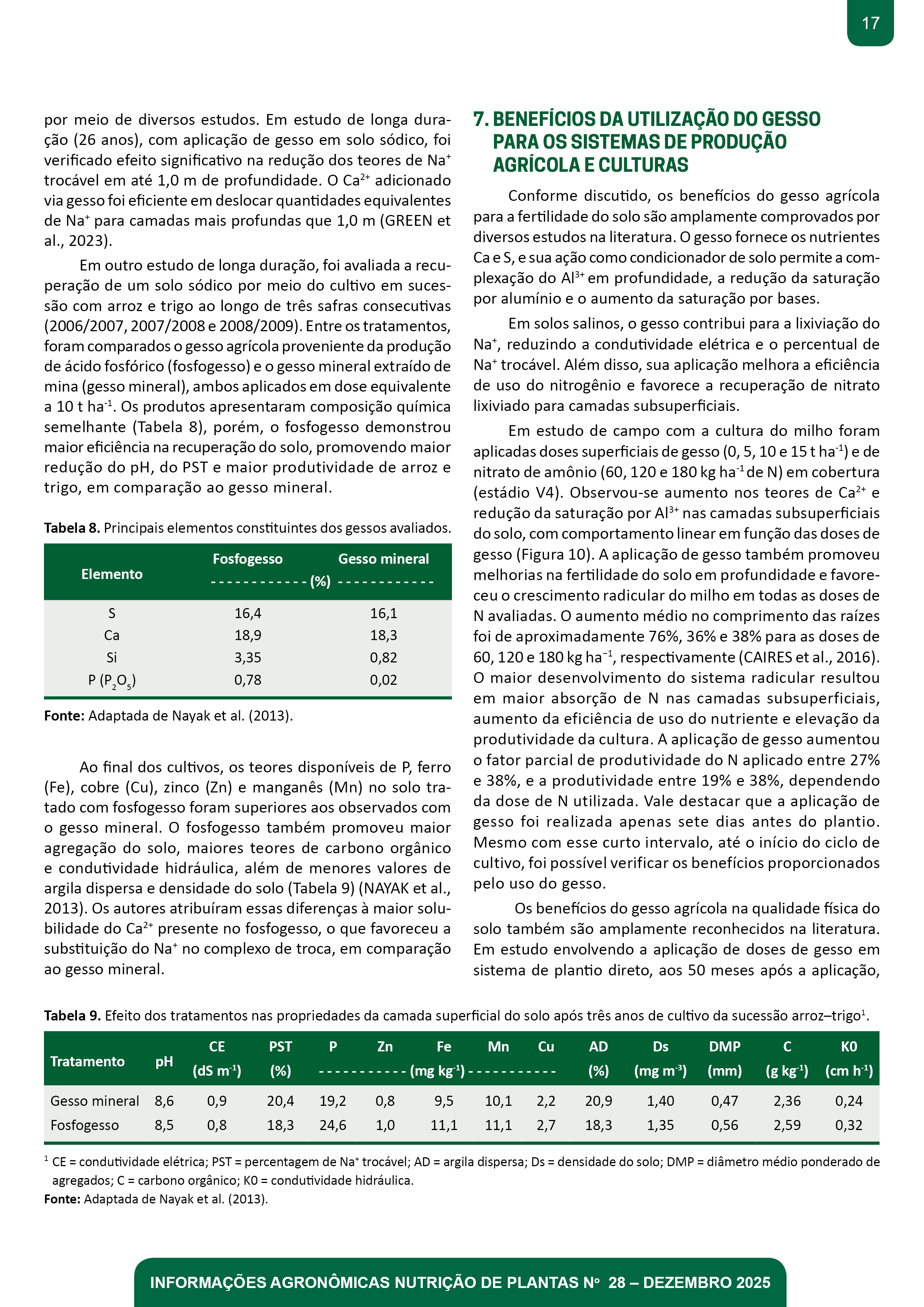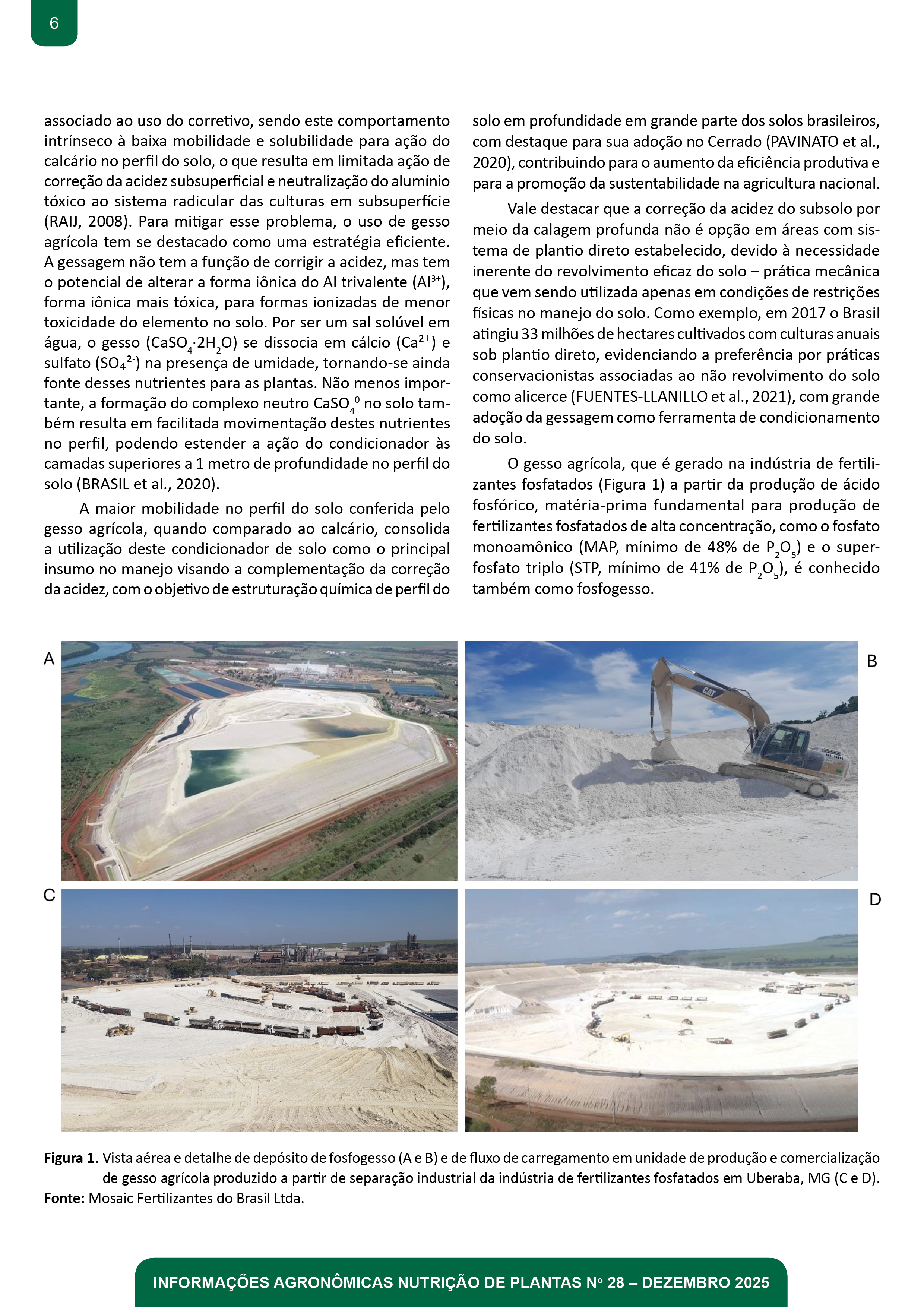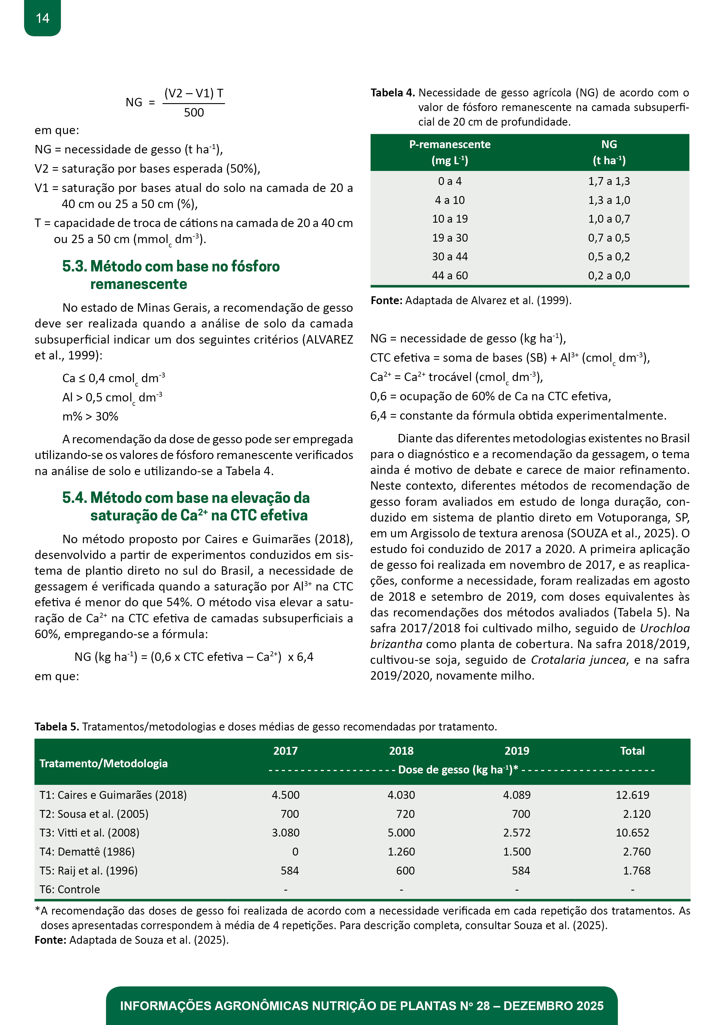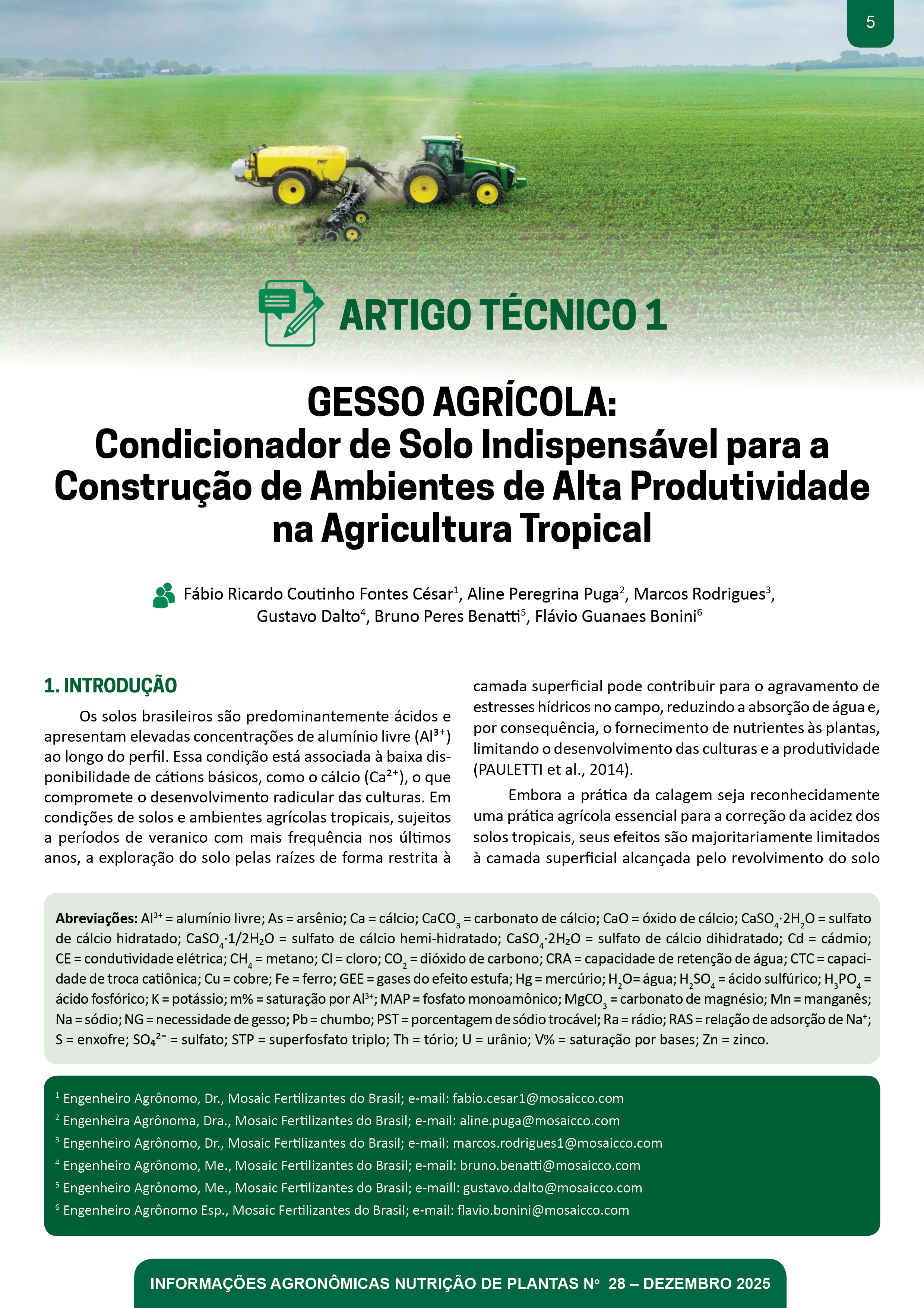 - Pg. 5-21 Artigo Técnico 1: GESSO AGRÍCOLA: Condicionador de Solo Indispensável para a Construção de Ambientes de Alta Produtividade na Agricultura Tropical Fábio Ricardo Couti nho Fontes César, Aline Peregrina Puga, Marcos Rodrigues, Gustavo Dalto, Bruno Peres Benatti, Flávio Guanaes Bonini