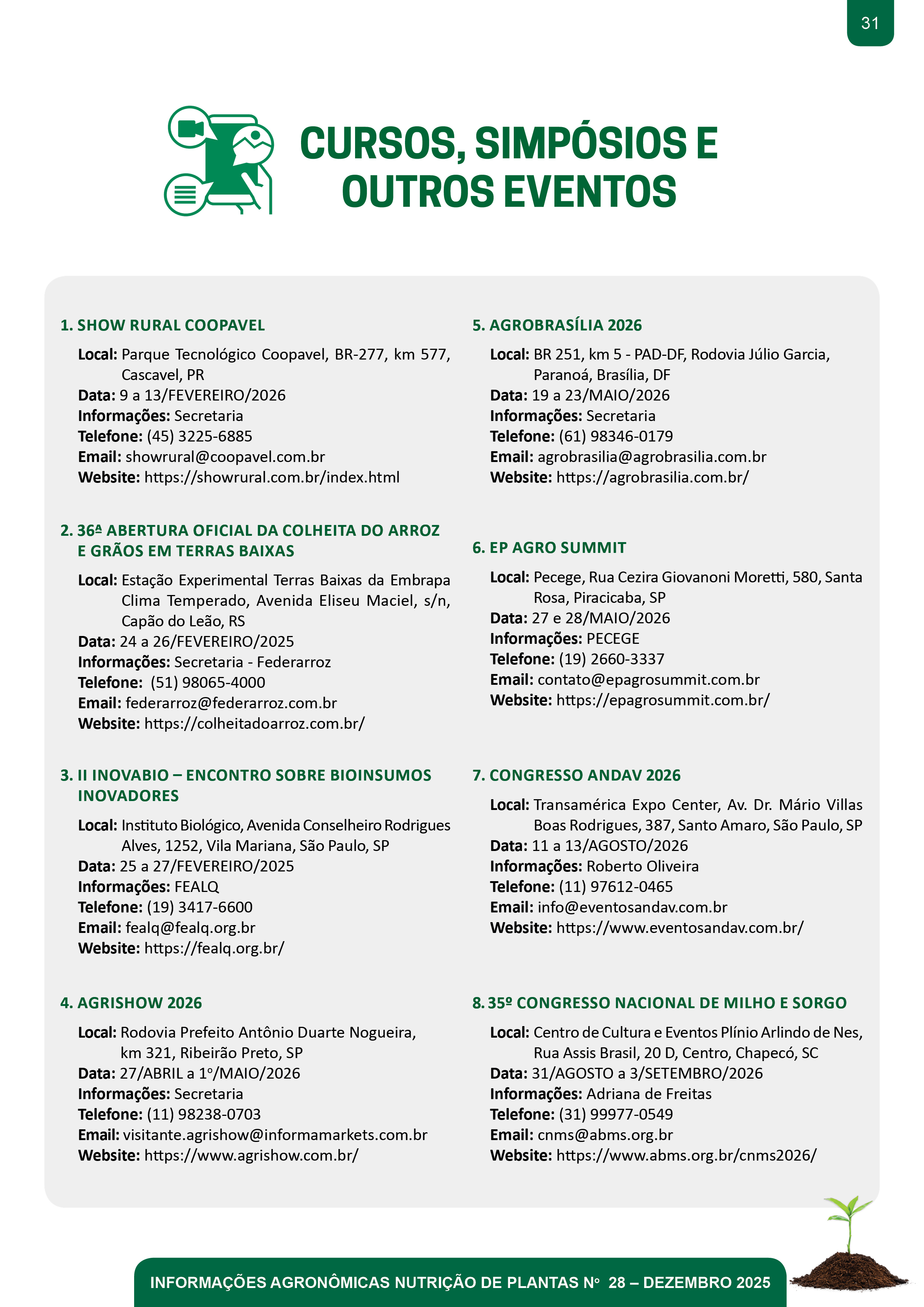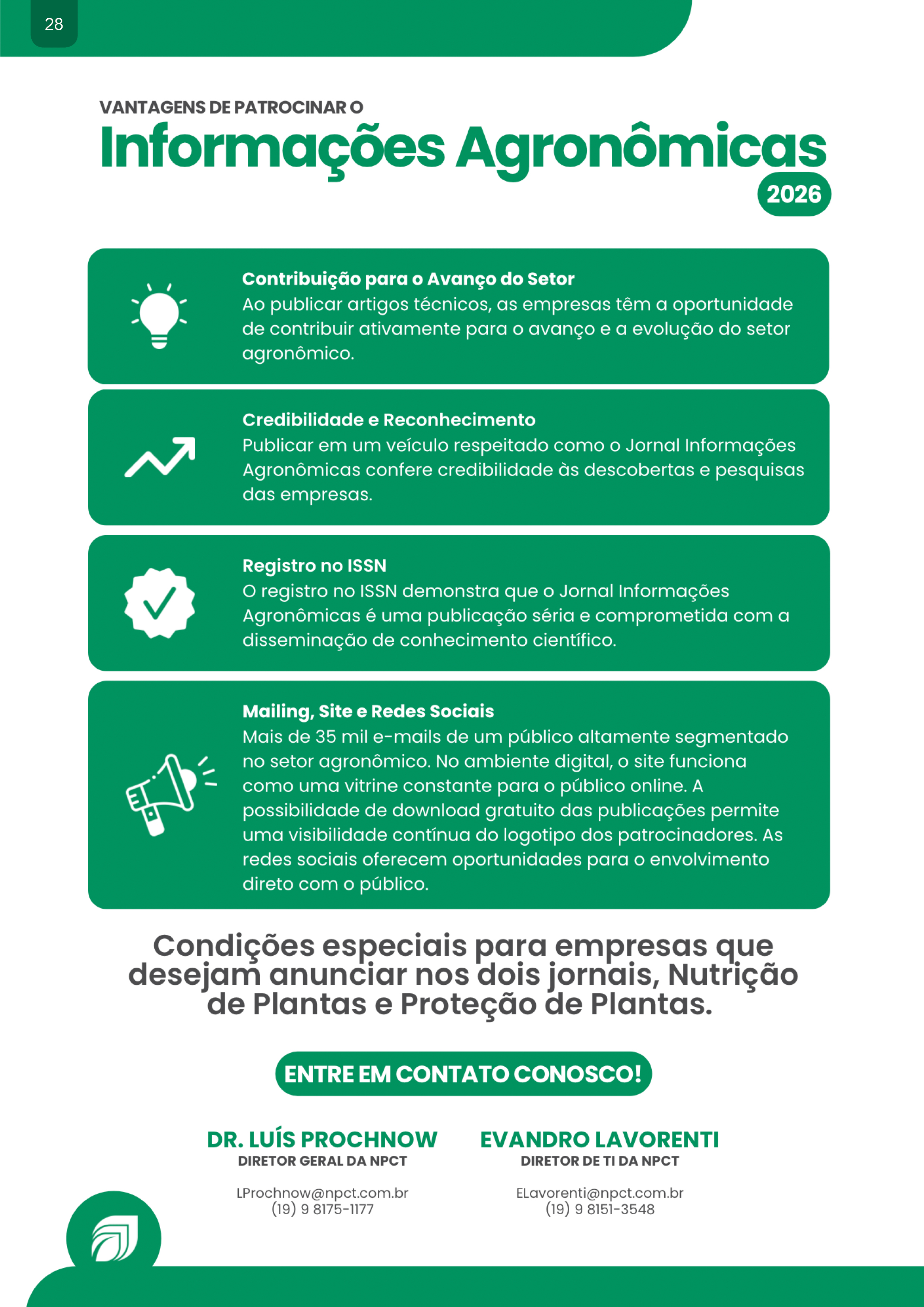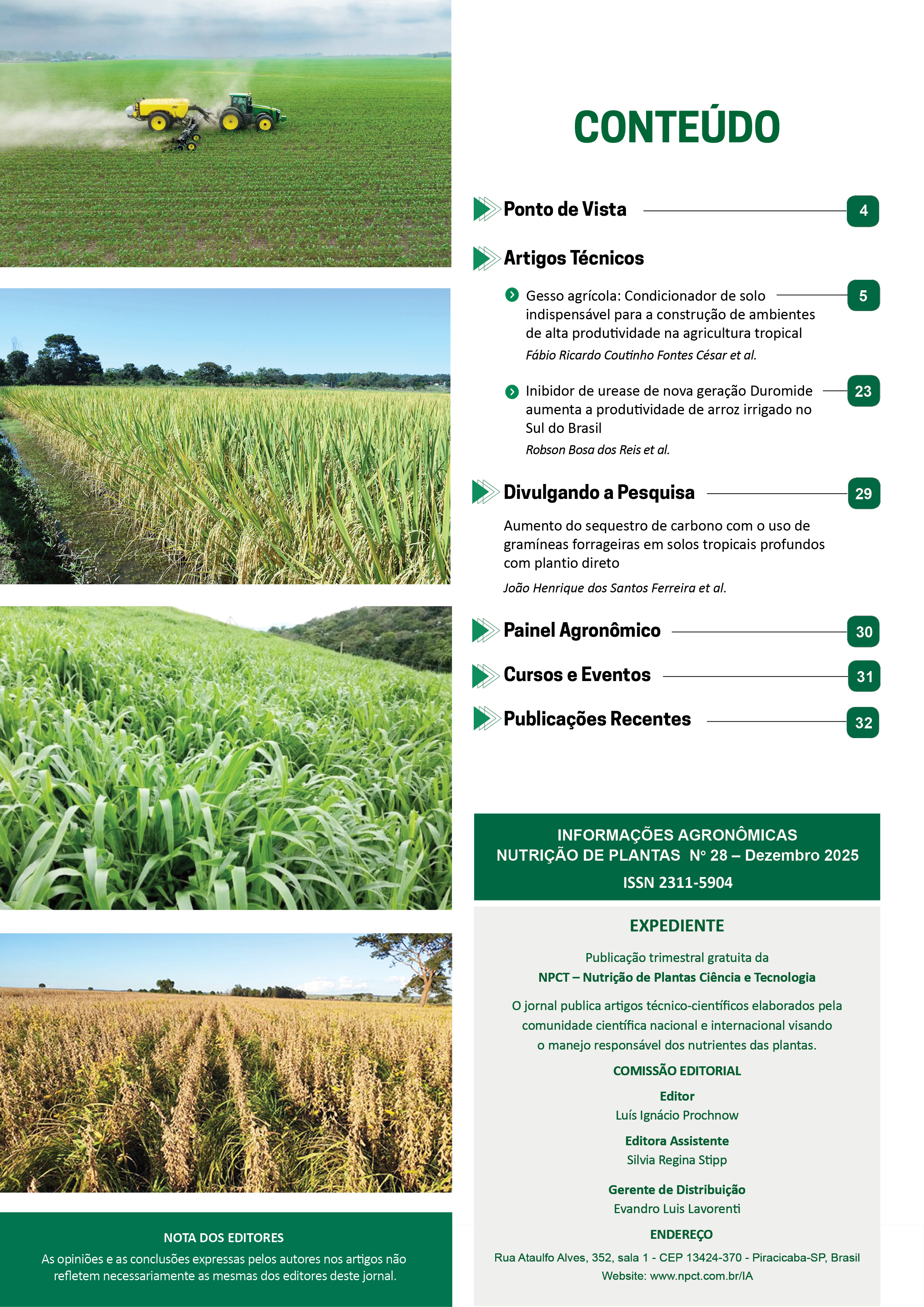 - Pg. 28 Informações Agronômicas 2026: Patrocínios aberto! Publique seus artigos científicos e/ou faça seus anúncios!