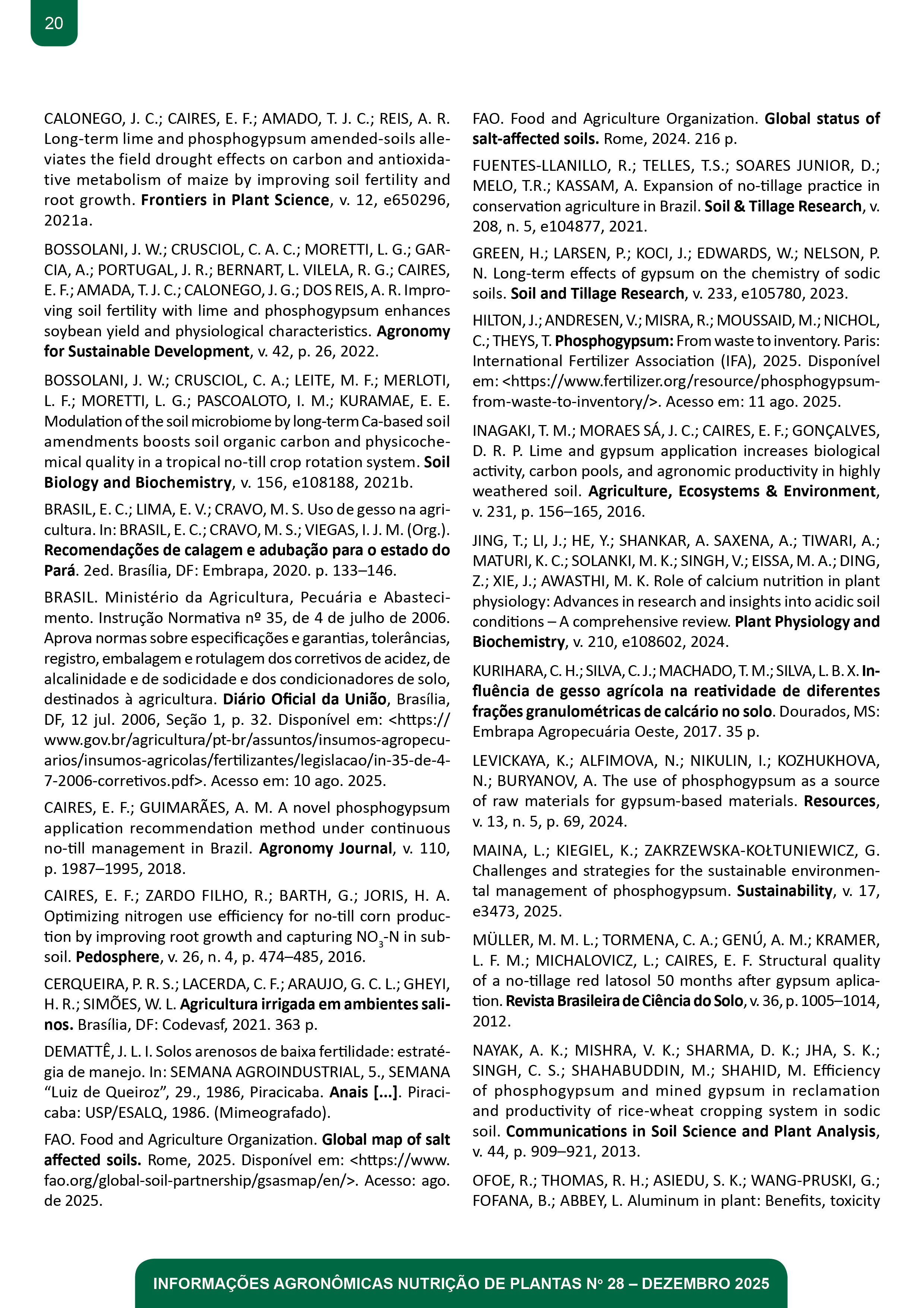 - Capa Informações Agronômicas - Nutrição de Plantas Número 28 | Dezembro 2025