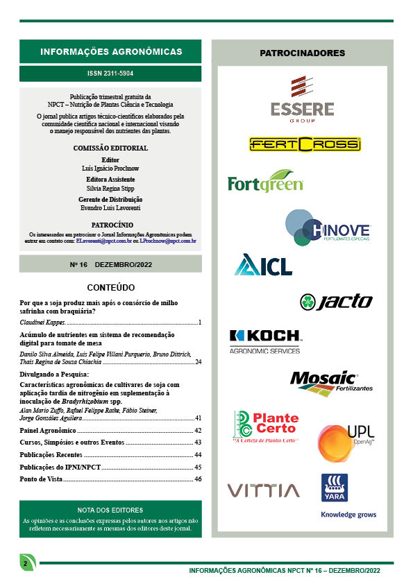 - Pg. 2 Patrocinadores desta Edição Essere Group; Fertcross Leverage; Fortgreen; Hinove Agrociência; ICL Group; Jacto; Koch Agronomic Services; Mosaic Fertilizantes; Laboratório Plante Certo; UPL OpenAg; Grupo Vittia e Yara Brasil