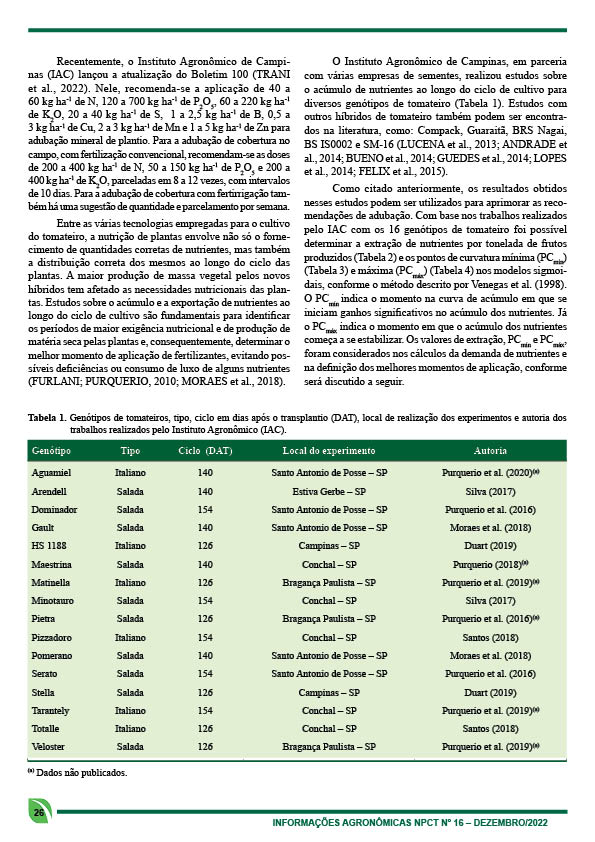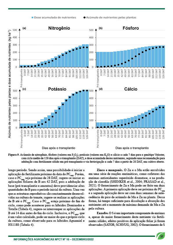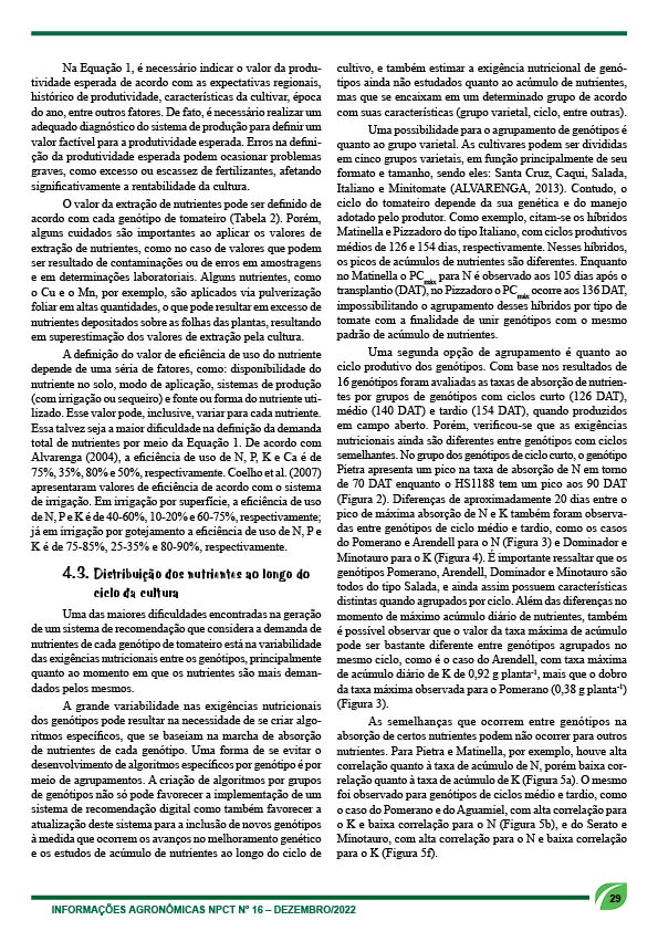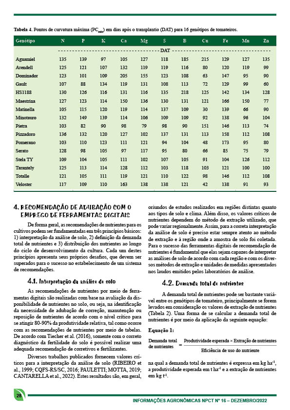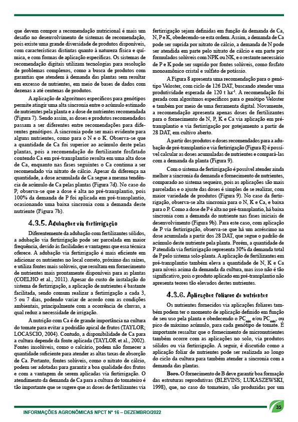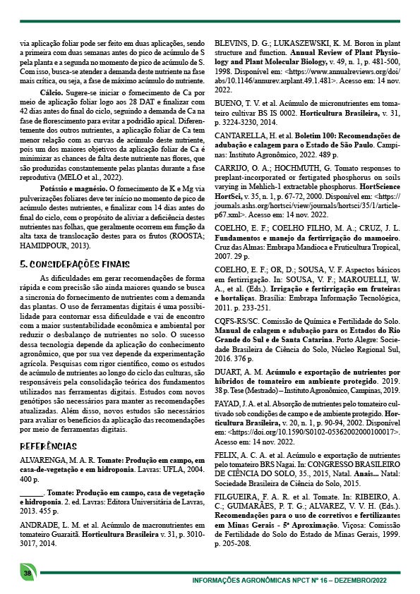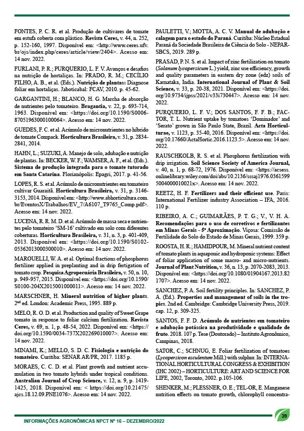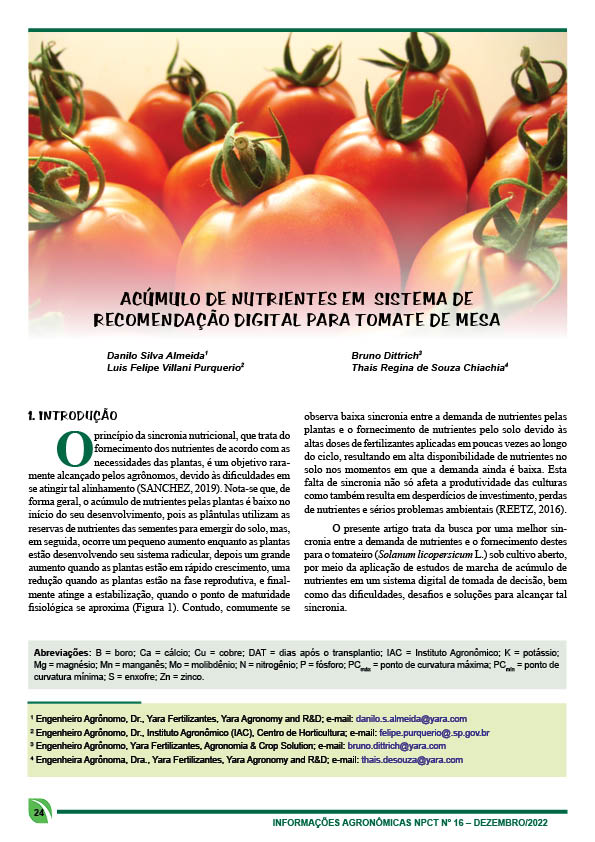 - Pg. 24-40 Acúmulo de Nutrientes em Sistema de Recomendação Digital para Tomate de Mesa Danilo Silva Almeida; Luis Felipe Villani Purquerio; Bruno Dittrich; Thais Regina de Souza Chiachia