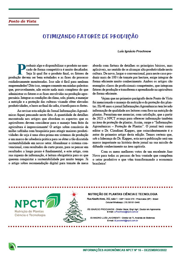 - Pg. 46 Ponto de Vista: Otimizando Fatores de Produção Luís Ignácio Prochnow